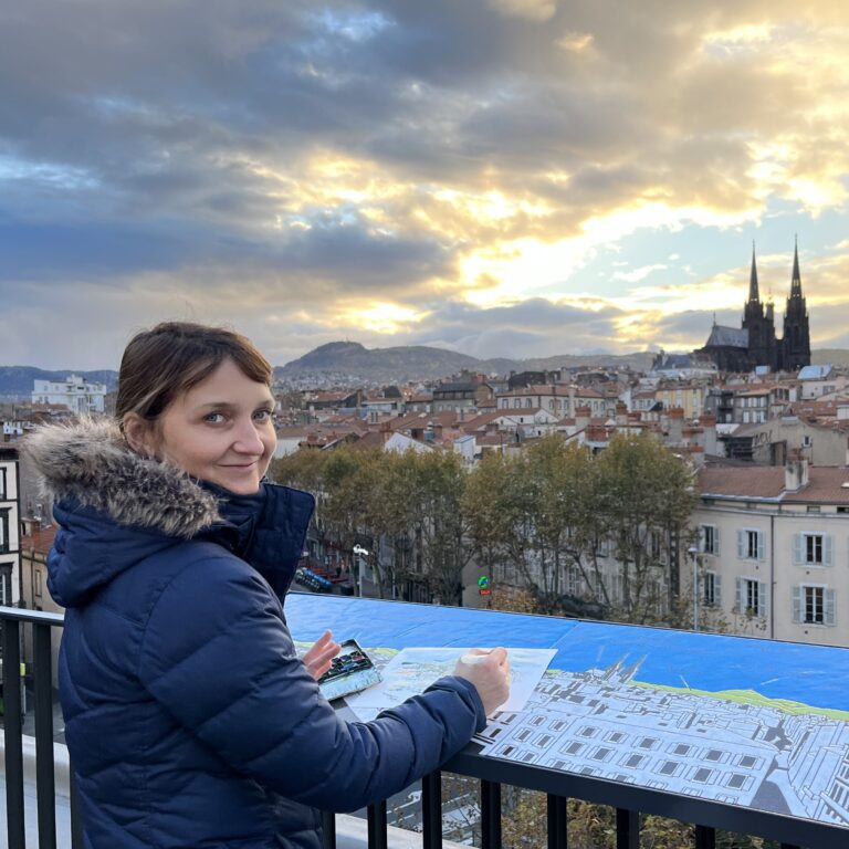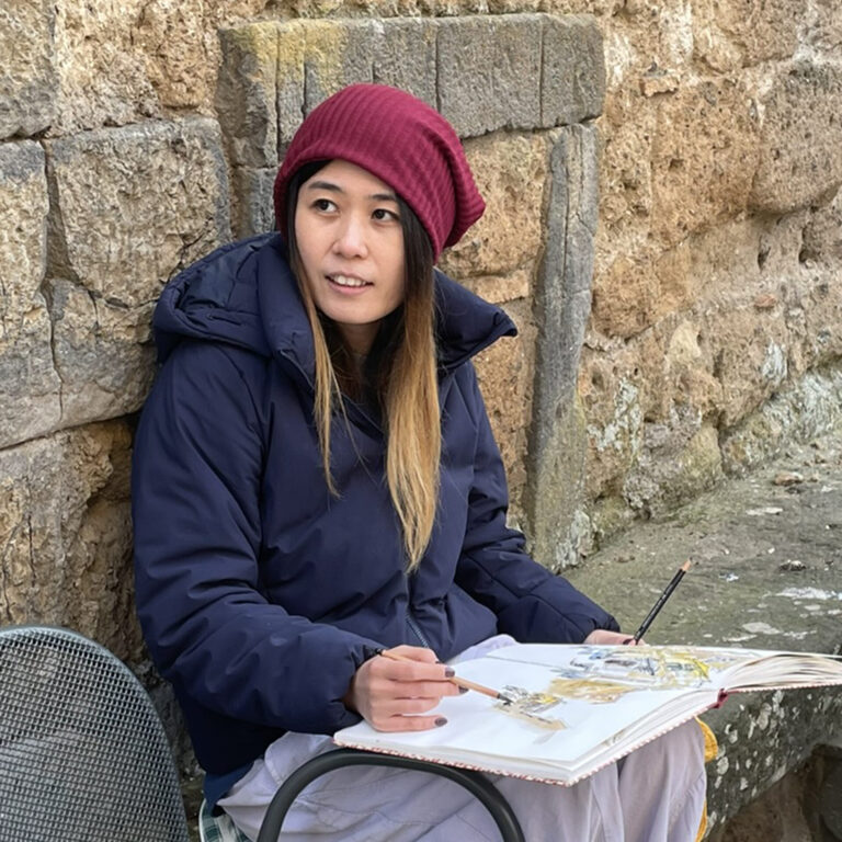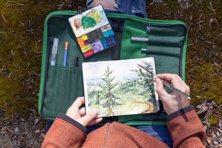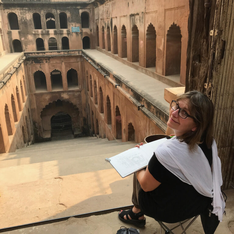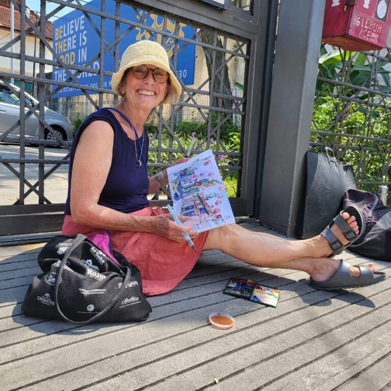 Sketcher and illustrator Nina Khashchina is a prolific travel sketchbook artist always prepared to capture a moment, even when she is scuba diving, kayaking or on a horseback. She has filled more than 155 sketchbooks over the years, documenting trips to the Maldives, Spain, Alaska, her native Ukraine and many other locations. Known for her gouache, ink, and mixed media work, Khashchina is often drawn to the diverse colors, textures, and lighting of urban and natural environments. She has been teaching drawing and painting as an art instructor for more than 15 years and is a member of the Urban Sketchers community in the San Francisco Bay Area.